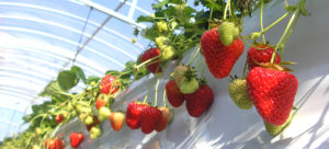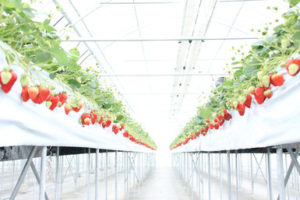 高設栽培を用いて栽培しているので、清潔できれいないちごをそのまま食べることができます。