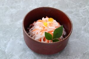 | 紅白なます | 平和・清浄 | 大根と人参を酢で和えたもの |