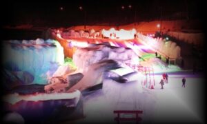 夜には 7色のライト で幻想的に氷像が照らされ、昼間には見えないような陰影や透明感が浮かび上がる演出がなされます。