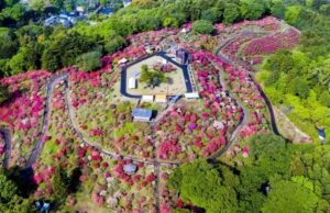 春の訪れとともに斜面を埋め尽くすツツジは、赤・ピンク・白・オレンジなど多彩な色合いで丘を包み込み、まるで色の絨毯(じゅうたん)を敷いたような、まさに壮大な景観を楽しめます。