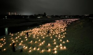 かまくらの中で灯されるろうそくの柔らかい光は、寒い冬の夜を温かく彩ります。